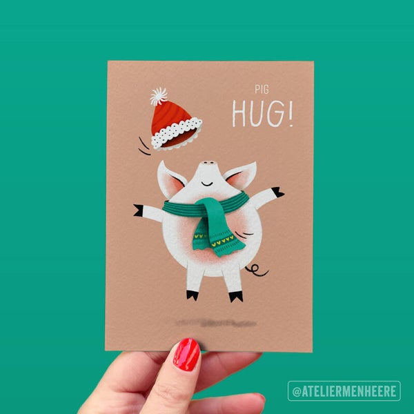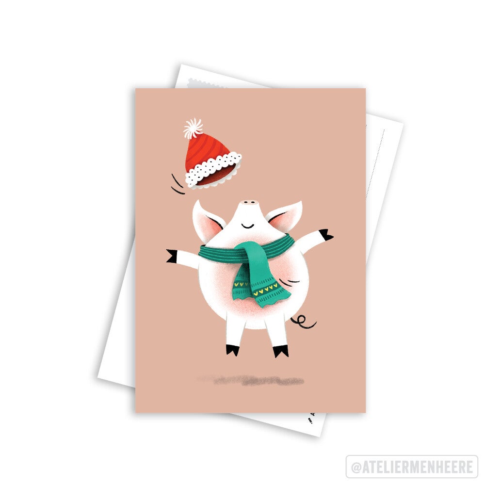 Leuk kerstkaartje met een grote kerstknuffel van dit schattige varkentje!