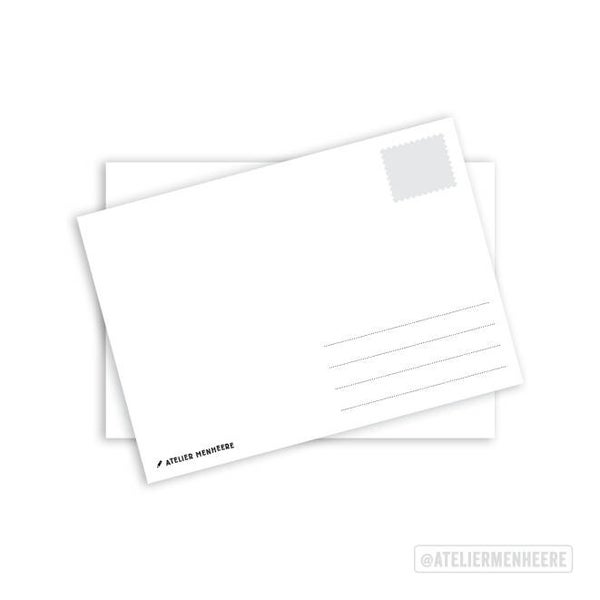 Ansichtkaart met digitale afdruk van een handgetekende illustratie, gedrukt op 350 grams Tintoretto Gesso. Dit is prachtig ongestreken papiersoort met een subtiel structuurtje wat zorgt voor een unieke en luxe uitstraling. Het is een tikje gebroken wit en erg stevig. De achterzijde is voorzien van adresregels om op te schrijven.