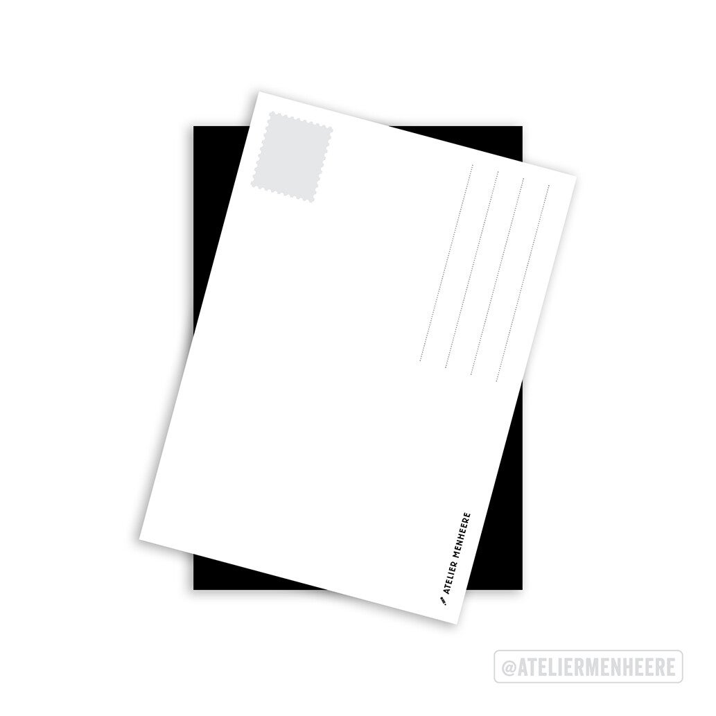 Ansichtkaart met digitale afdruk van een handgetekende illustratie, gedrukt op 350 grams Tintoretto Gesso. Dit is prachtig ongestreken papiersoort met een subtiel structuurtje wat zorgt voor een unieke en luxe uitstraling. Het is een tikje gebroken wit en erg stevig. De achterzijde is voorzien van adresregels om op te schrijven.